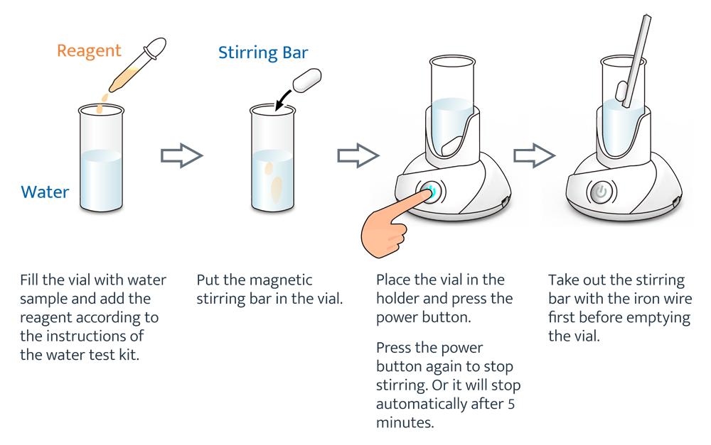 Smart Stir's compact design not only saves space, but it is also compatible with standard vials whose diameter is under 2.7 cm which are included in most water test kits.