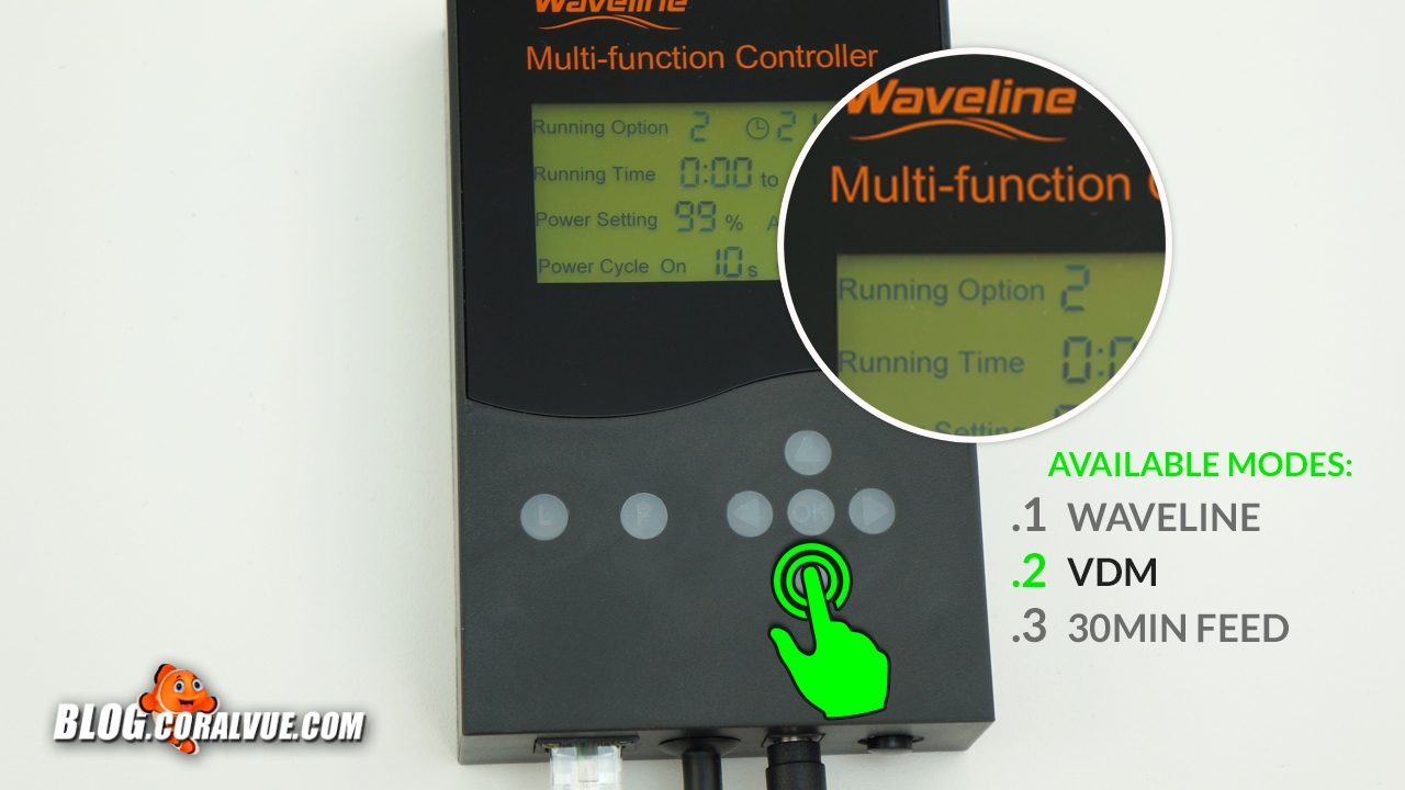 You will also need to set the WavePuck controller to VDM mode. You do this by pressing the Center Button on the controller once and then the Up button once to switch your controller from Mode 1 to Mode 2.